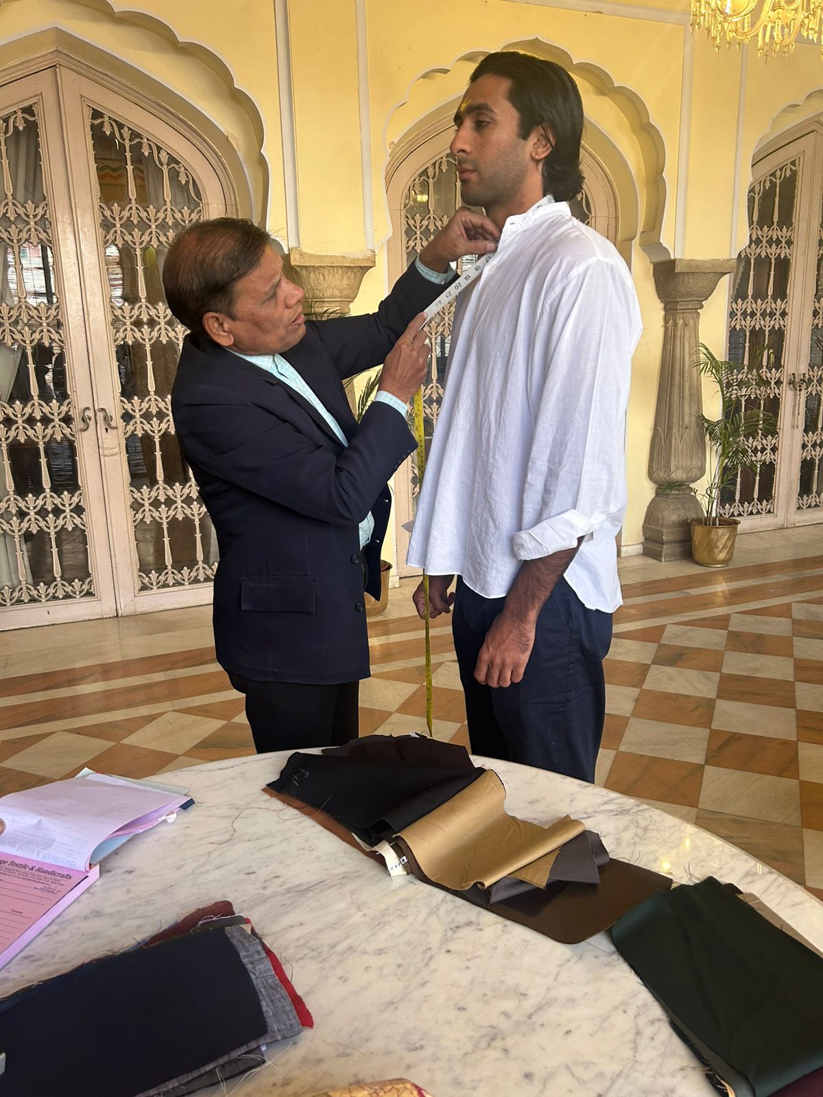 Heritage Textile & Handicraft, Jaipur, tailoring a made-to-measure suit for Padmanabh Singh of Jaipur.