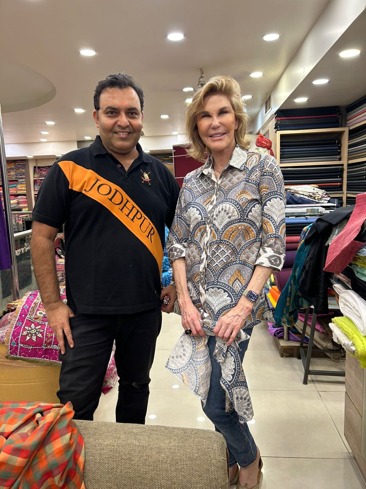 Naty Abascal, celebrated fashion icon and long-standing client, at Heritage Textile & Handicraft, Jaipur.